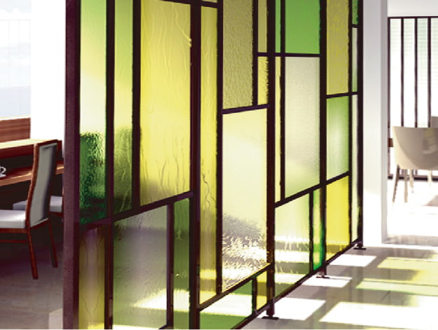 なつかしがらすを使った「セレナスクリーン」は光と戯れるなつかしがらすの魅力を最大限に引き立たせます。