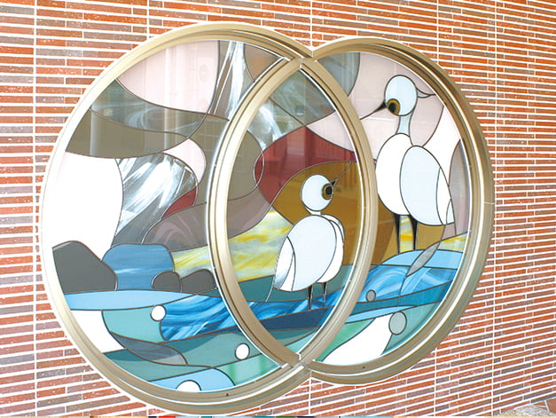 『SGOステンドグラス』は、一枚の板ガラスに特殊フィルムをはり、鉛でコーティングしたSGO工法を使用したデザイングラスです。